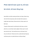 Tài liệu "Phân biệt kế toán quản trị kế toán tài chính kế toán tổng hợp" có mã là 549520, file định dạng pdf, có 14 trang, dung lượng file 118 kb. Tài liệu thuộc chuyên mục: Tài liệu chuyên ngành > Chuyên Ngành Kinh Tế > Kế Toán - Kiểm Toán. Tài liệu thuộc loại Đồng