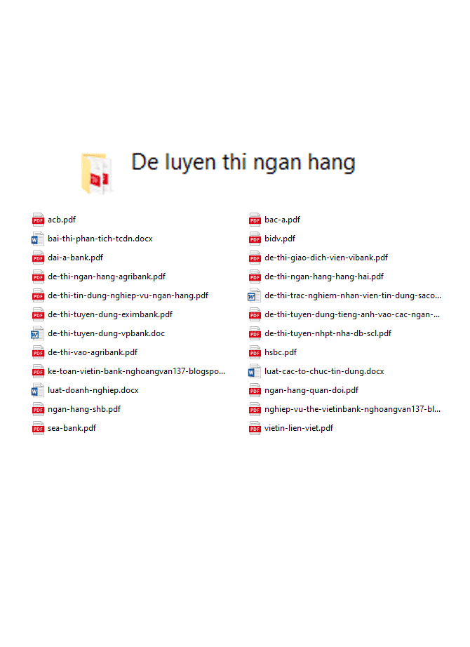 Tài liệu "Tổng hợp đề luyện thi của các ngân hàng " có mã là 1682500 Tài liệu thuộc chuyên mục: Tổng hợp > Thư viện Đề thi. Tài liệu thuộc loại Bạch kim
