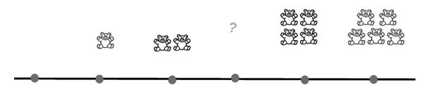 Jenny uses small bears to mark her number line. Look at the pattern she has made. How many bears belong where the question mark is?