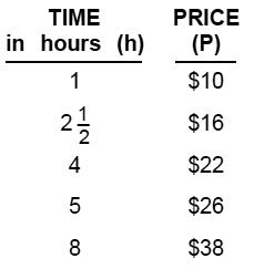 Each Saturday Bill and Carol rent a canoe. The chart above shows the amount of time of and the price paid for each rental. Which equation will help Bill and Carol determine the price of their next canoe rental?