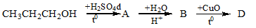 (A, B, D là những sản phẩm chính). Xác định công thức cấu tạo của D?