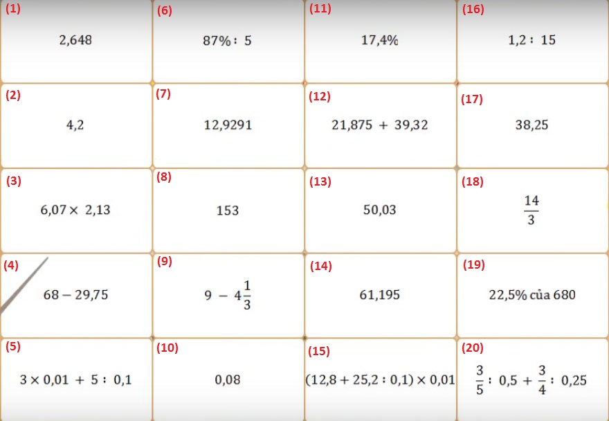 Đề thi Violympic Toán lớp 5 vòng 13 năm 2016 - 2017 cùng với đáp án vừa được cập nhật trên hệ thống bài thi trắc nghiệm của Kho Tri Thức Số, mời các bạn cùng bắt đầu làm để ôn luyện kiến thức cũng như rèn khả năng giải quyết các dạng bài toán khác nhau. Chúc các em ghi được điểm số cao!