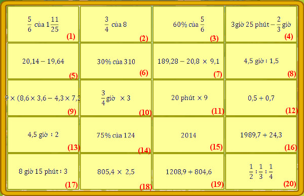 Vòng 16 của Cuộc thi giải Toán qua mạng năm 2015 - 2016 sẽ bắt đầu từ ngày 11/03/2016. Mời các bạn tham gia làm bài test Luyện thi Violympic Toán lớp 5 vòng 16 năm 2015 - 2016 trên trang khotrithucso.com để ôn tập và rèn luyện cho vòng thi sắp tới. Đừng quên tham khảo phần đáp án cuối bài nhé!
